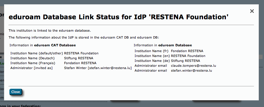 - manage the relationship between an IdP in eduroam CAT vs. an IdP in the official eduroam database