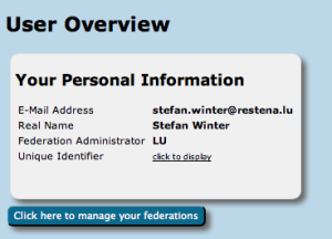 After clicking the button, an overview of the federation occurs, with entry points for the tasks mentioned above.