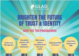 GÉANT Learning and Development team (GLAD) is passionate about building, diversifying and strengthening capabilities of European NREN community. With the help of TIM, we hope to disseminate and build T&I competencies across Europe as well as to build the workforce of the future.