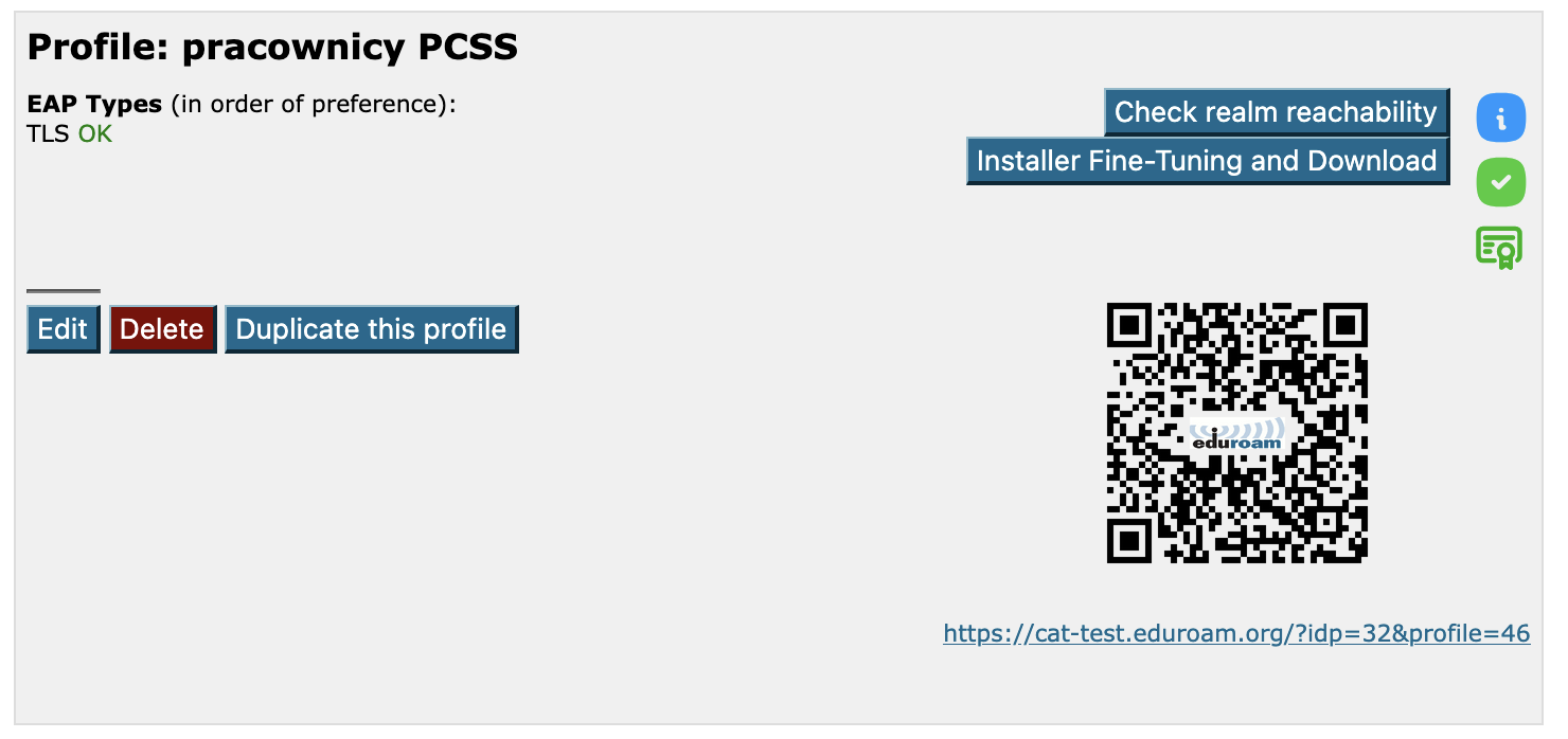 CAT also asks for the RADIUS realm belonging to this profile; submitting the realm name is optional, but highly recommended because it enables us to do very thorough sanity checks on your RADIUS installation later. Please see the section "Verifying my RADIUS setup" for more details.