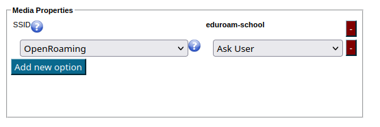 Starting with version 2.1, the eduroam onboarding toolset (eduroam CAT and eduroam Managed IdP) integrates Passpoint network definitions in general, and OpenRoaming settings in particular, in its standard workflow. You can enable OpenRoaming by setting the option of that name in the "Media Properties" section: