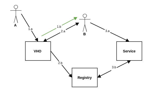 In a traditional SAML flow, the following happens. The goal is to enable user Aladár (A) to manage the authorisation of user Béla (B) authorization to service S, but in a way that this information is not maintained in S but in an external source, the Membership Management Service (MMS).