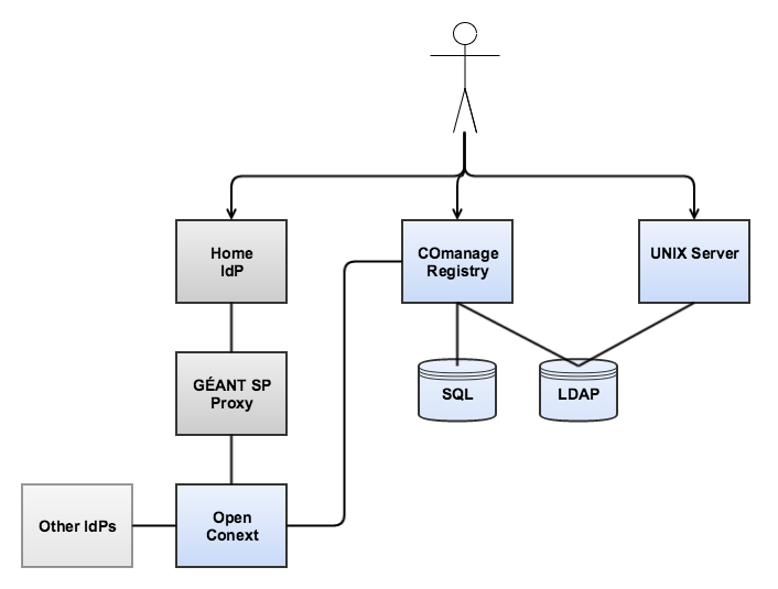 Leverage COmanage to enroll a researcher to a collaboration, collect the researcher's SSH public key, and create a Unix account for the researcher.