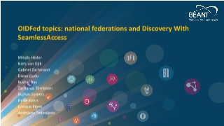 17:00–18:00 | OIDFed (Two Related Topics in One Time Slot) We’ll explore two interconnected OIDFed topics during this extended session. In this cycle, the Incubator aimed to identify potential gaps in the OIDFed specifications and tooling that might hinder implementation by national federations with limited resources. We’ll share our findings and outline our future roadmap. A major area of focus is discovery in the OIDFed ecosystem. We'll present our collaborative proof-of-concept developed with SeamlessAccess as well as our efforts to have OIDFed discovery standardized. | Video recording - | Slides Links List of tools https://openid.net/developers/openid-federation-implementations/ Go OIDFed Implementation: https://github.com/zachmann/go-oidfed OFFA