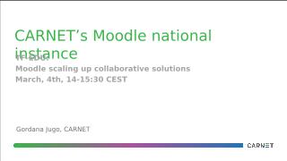 | Thursday, 4 March 2021 from 14:00 - 15:30 CET | 1 | What is troubling us with Moodle and why it is crucial for NRENs to collaborate on developing customized solution/s. | 90 minutes | Dragana Kupres, CARNET | Approved |