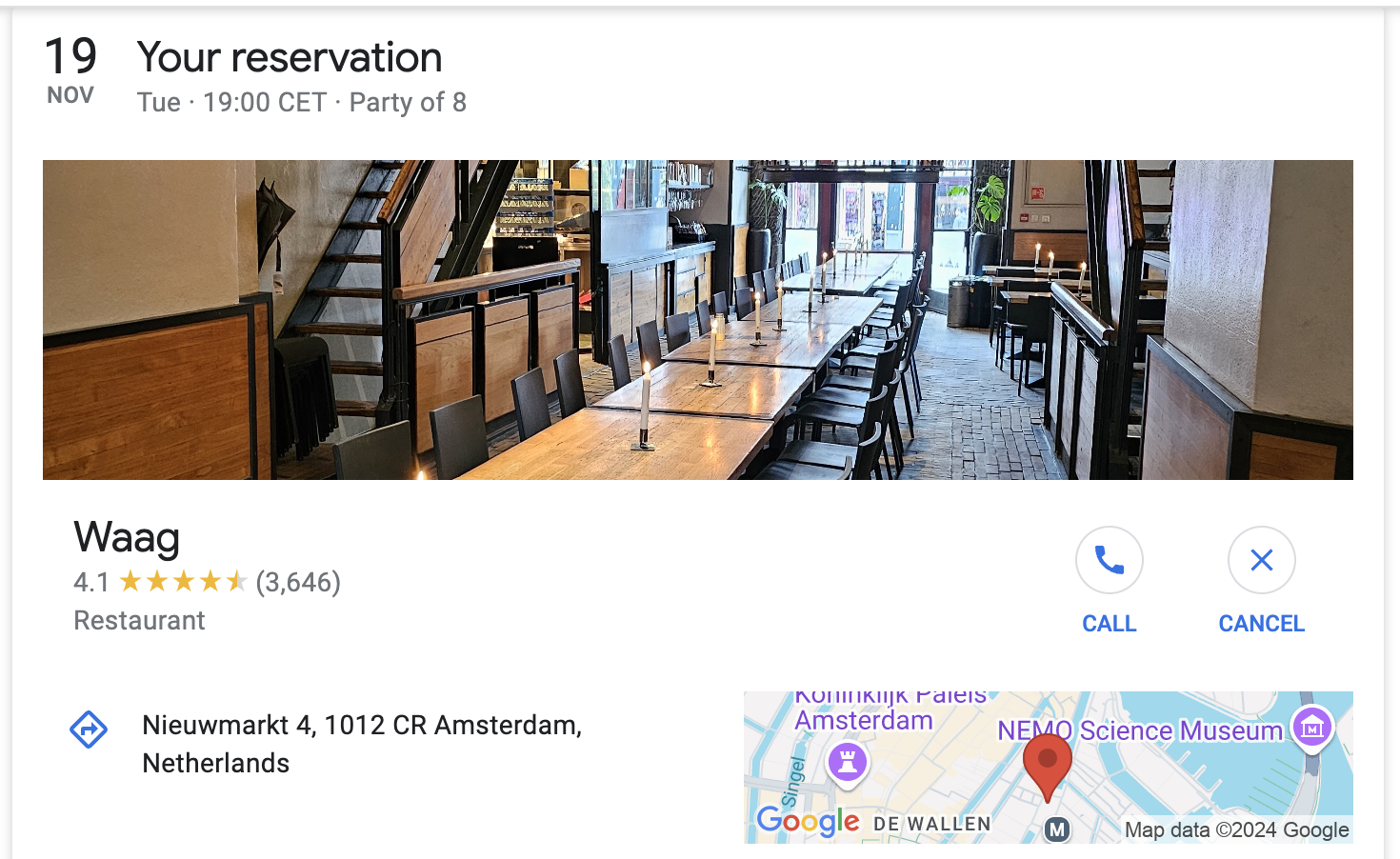 We will meet on the Waag restaurant at 7:00 pm.