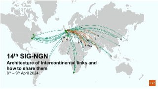 The 14th SIG-NGN will take place on 8-9 April 2024 at INFN in Catania, Sicily, Italy. The agenda will be finished over the coming weeks, and will focus on technologies for sharing of existing physical networks (overlays, underlays, spectrum sharing) and how they enable mission-specific network services, as well as on network architecture for intercontinental connectivity, including policies and technologies for links sharing as well as the evolution of intercontinental R&E connectivity.